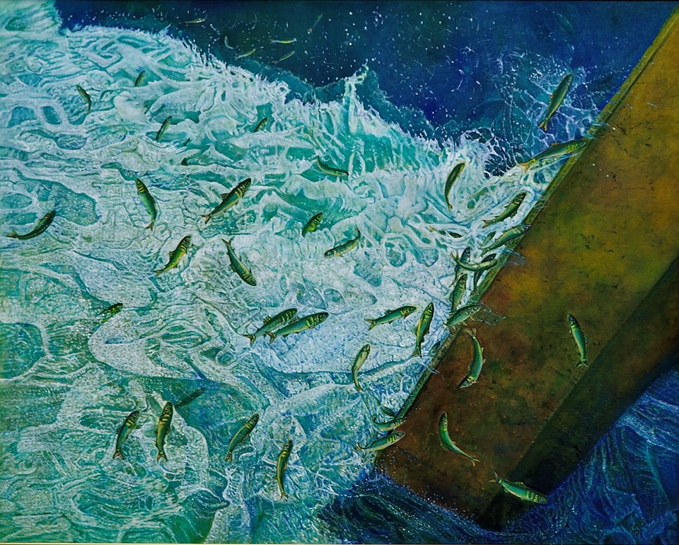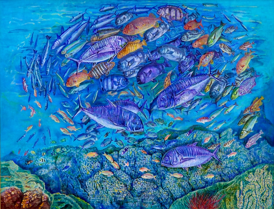 回転する魚群 |