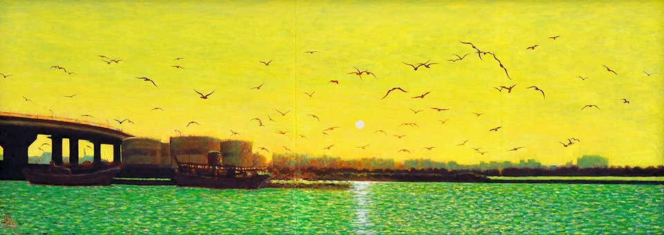釣り人のいる夕景 |