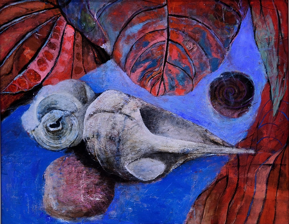 赤い葉と巻貝 |