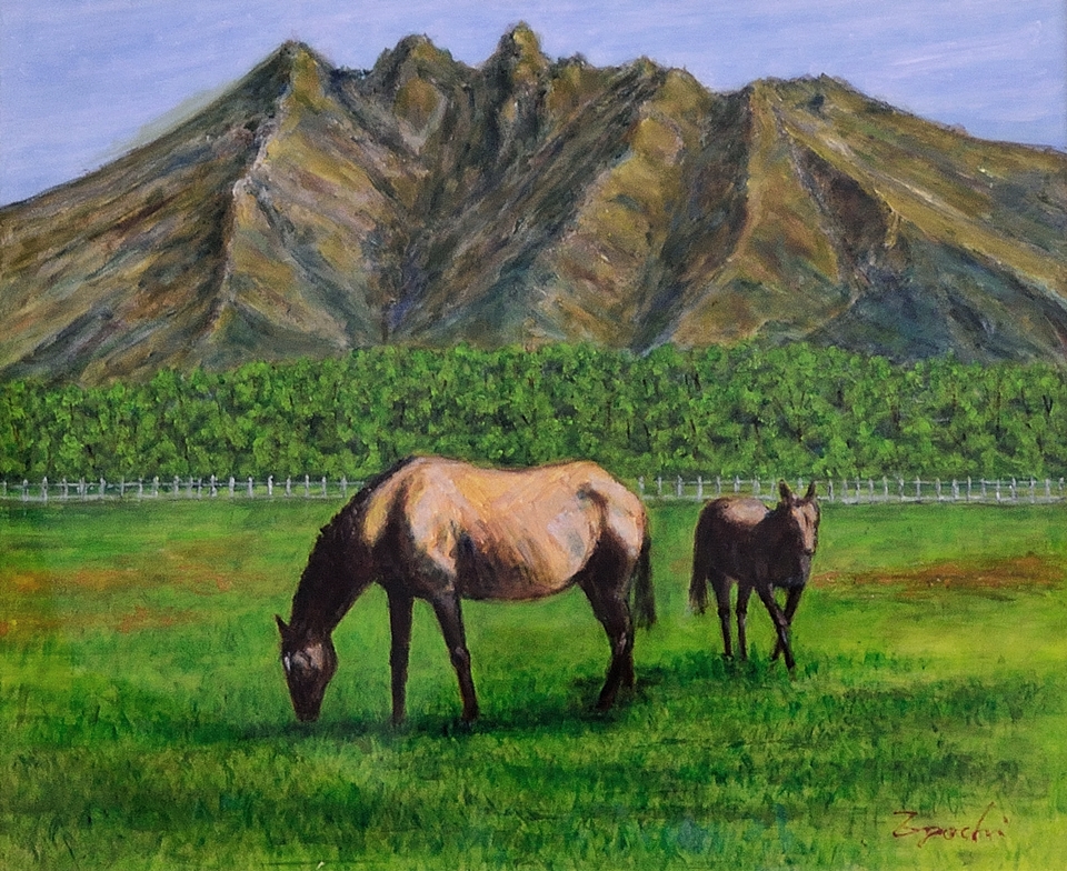 早朝の牧場に遊ぶ