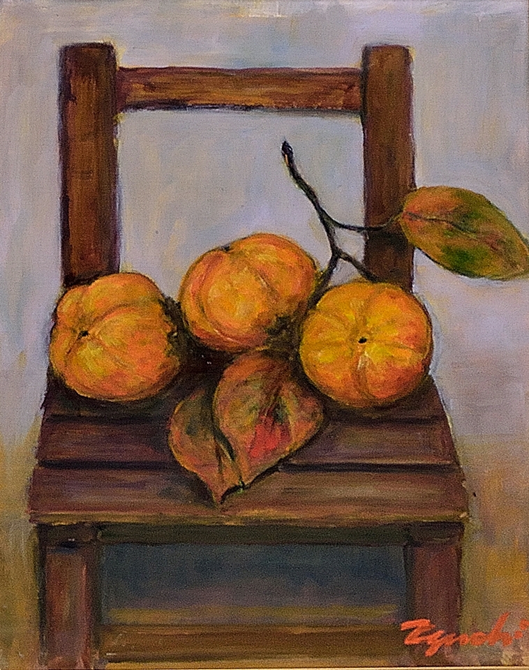 分教場の小さな椅子に次郎柿