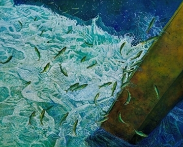 堰を遡上する鮎 |