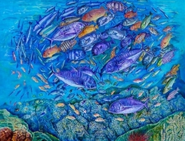 回転する魚群 |