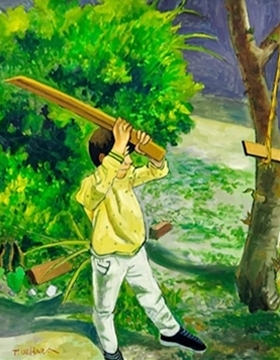 木刀で遊ぶ子供 |