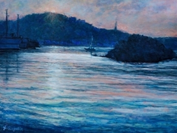 釣り人のいる夕景 |