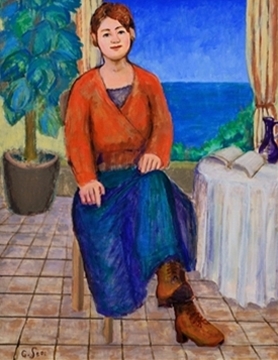 椅子に坐るK嬢 |