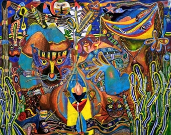 バラ色の大きな雲と静物 |