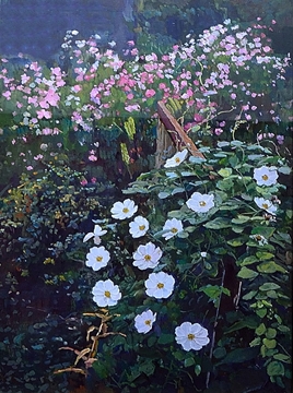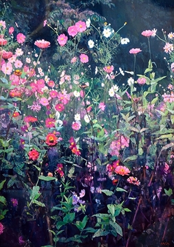 秋の花畑で