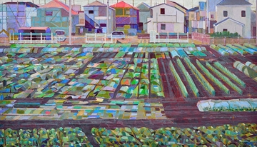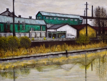緑色の工場のある風景 |